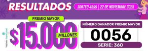 🎉 #ResultadosGenerales | Sorteo 4597Hoy celebramos una noche llena de alegrías para miles de familias colombianas. 💚 💰 El Premio Mayor de $15.000 millones cayó con el número 2972 – Serie 165, cambiando la vida de un afortunado que hoy comienza un nuevo capítulo. 🐷 Además, nuestro Lanzamiento Adicional entregó un bono consumible por $20 …
