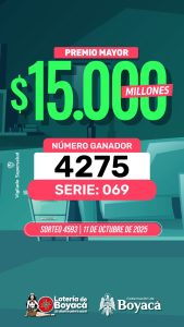 🔥 En su Sorteo 4593, el Premio Mayor de $15.000 millones fue para el número 4275 de la serie 069.